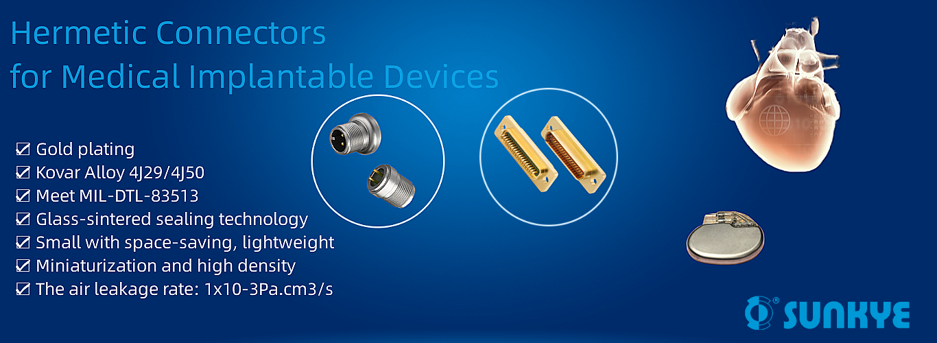 When medical equipment is sterilized under heat, pressure, chemicals, and water processes. hermetic products protect against various environmental conditions, including changes in atmospheric pressure, humidity/moisture, soil/grime, and other factors that would damage electrical connections,ensuring the integrity of delicate electronics. Sealed connectors serve implantable devices in medical systems. In implantable electronics such as audiology and cardiac devices, hermetic connectors protect the electronic device and ensure its functionality within the human body. Sunkye glass-sintered sealing connectors are ideal for medical implants applications where thermal stability, mechanical strength, insulation resistance, weight and size are a critical concern. Sunkye typically specifies Kovar alloy for its hermetic products to provide an effective barrier against gas ingress and corrosion.